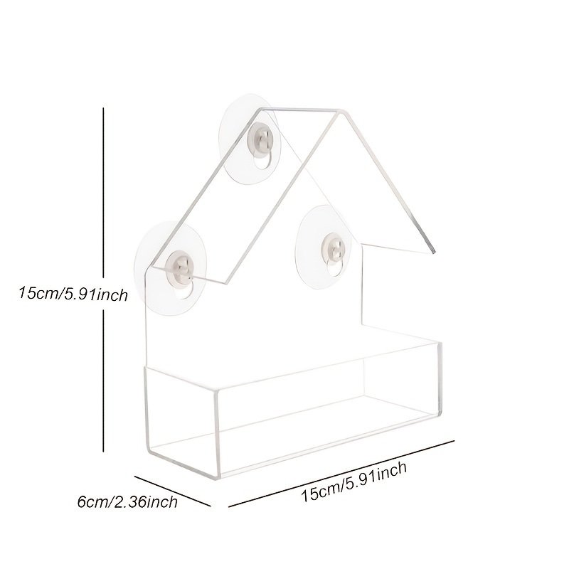 Product Name: Bird feeder. Product material: Acrylic. Product features: The hanging wall of the; Transparent color; Adjustable position position. Product use: Feed the birds. Product size: 15 X 6 X 15c; 5.91 X 2.36 X 5.91inch. TIPS: The data is measured by hand and there may be an error of 1~3 cm.
