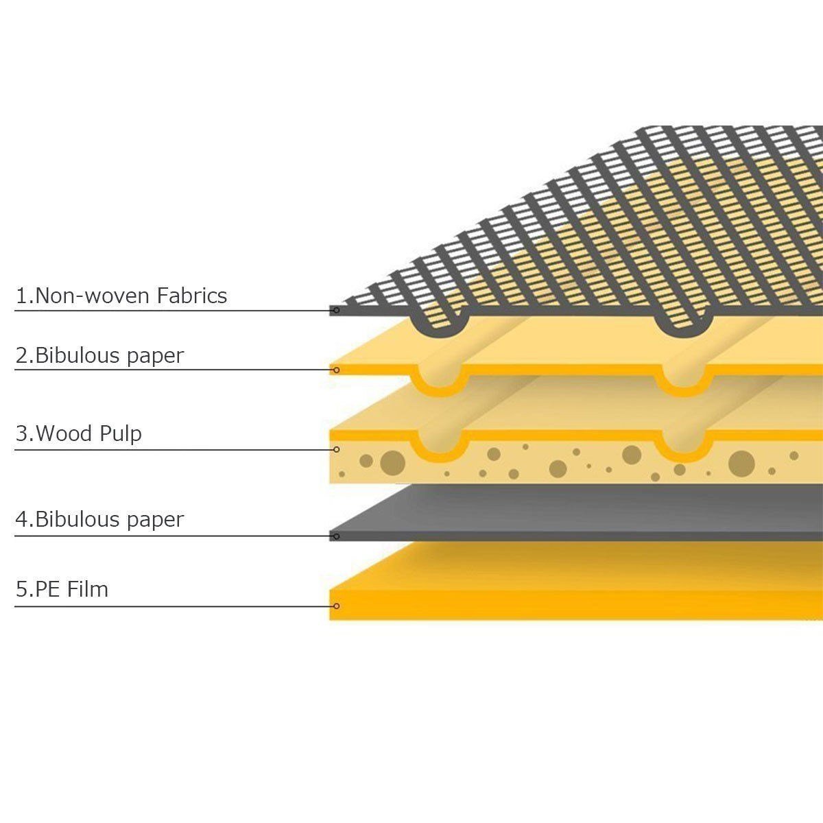 4.Double Protection Against Potential Leakage: The pad has 2 layers bibulous paper to absorb the urine, to be more secure, the bottom has an extra protection with a PE film to absorb any potential leakage. Your room will be double guaranteed to be clean and neat.