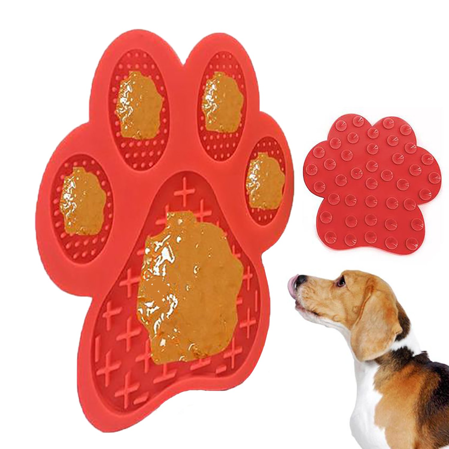 AH PAW Calming Lick Padsare flat mats designed for your pet to lick, over and over. They are coated with ridges and bristles that encourage licking. Since they are flat, your pet is not able to grab the food with his teeth and must use his tongue instead. The result makes for a much longer feeding.