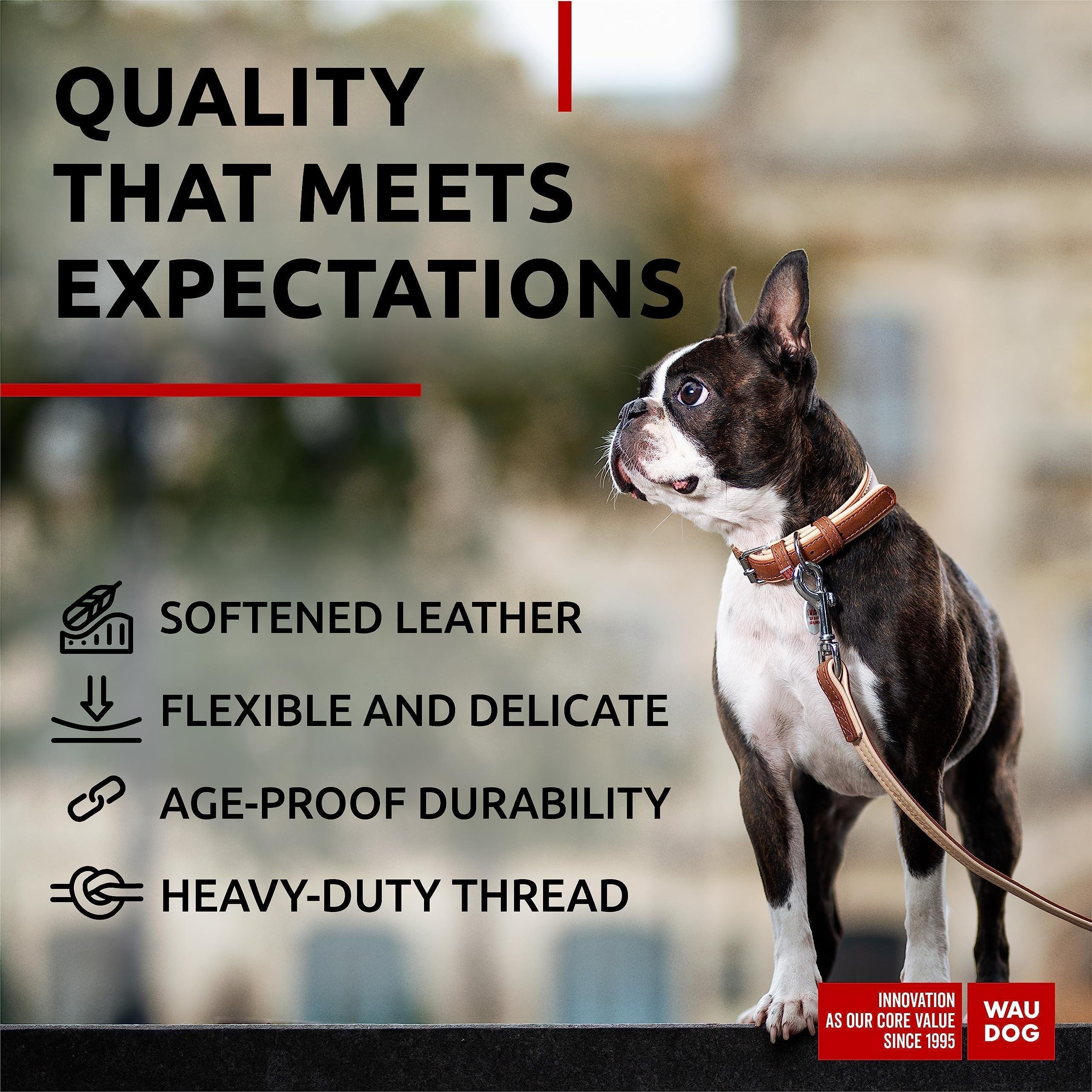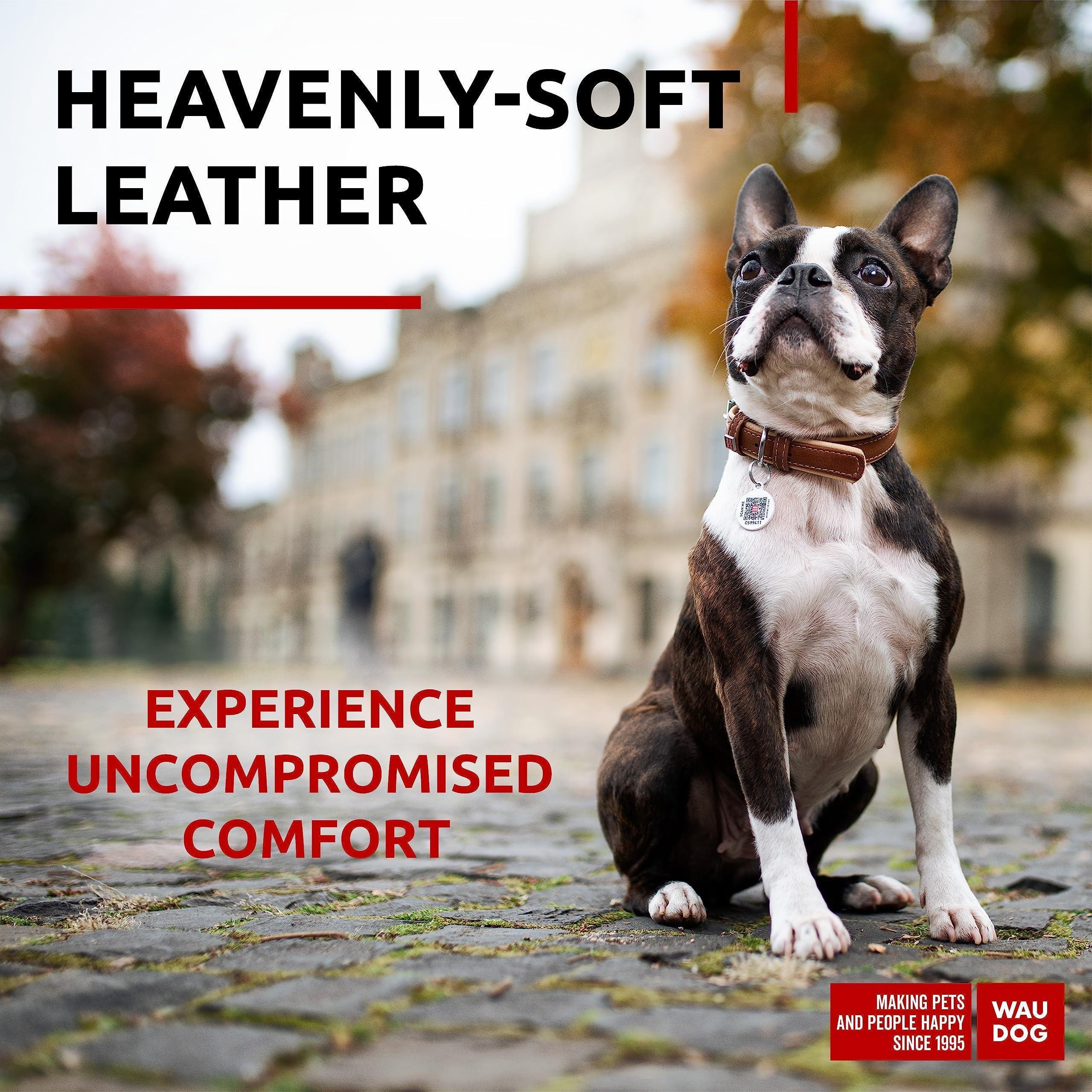 1.SOFTENED LEATHER Not one but two layers of softened leather are what makes this soft dog collar truly special and luxurious. Its softness is perfect both for gentle puppies and grown-up dogs.